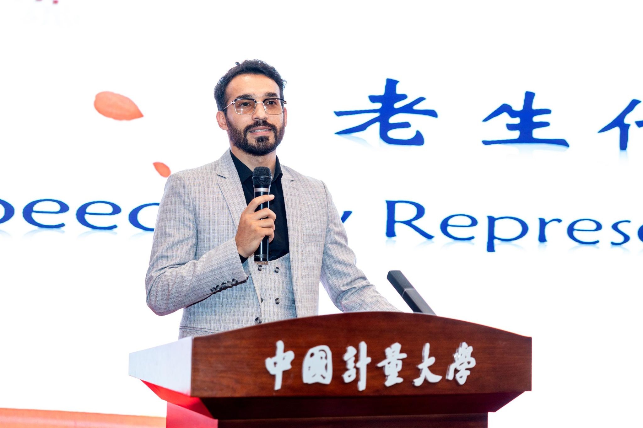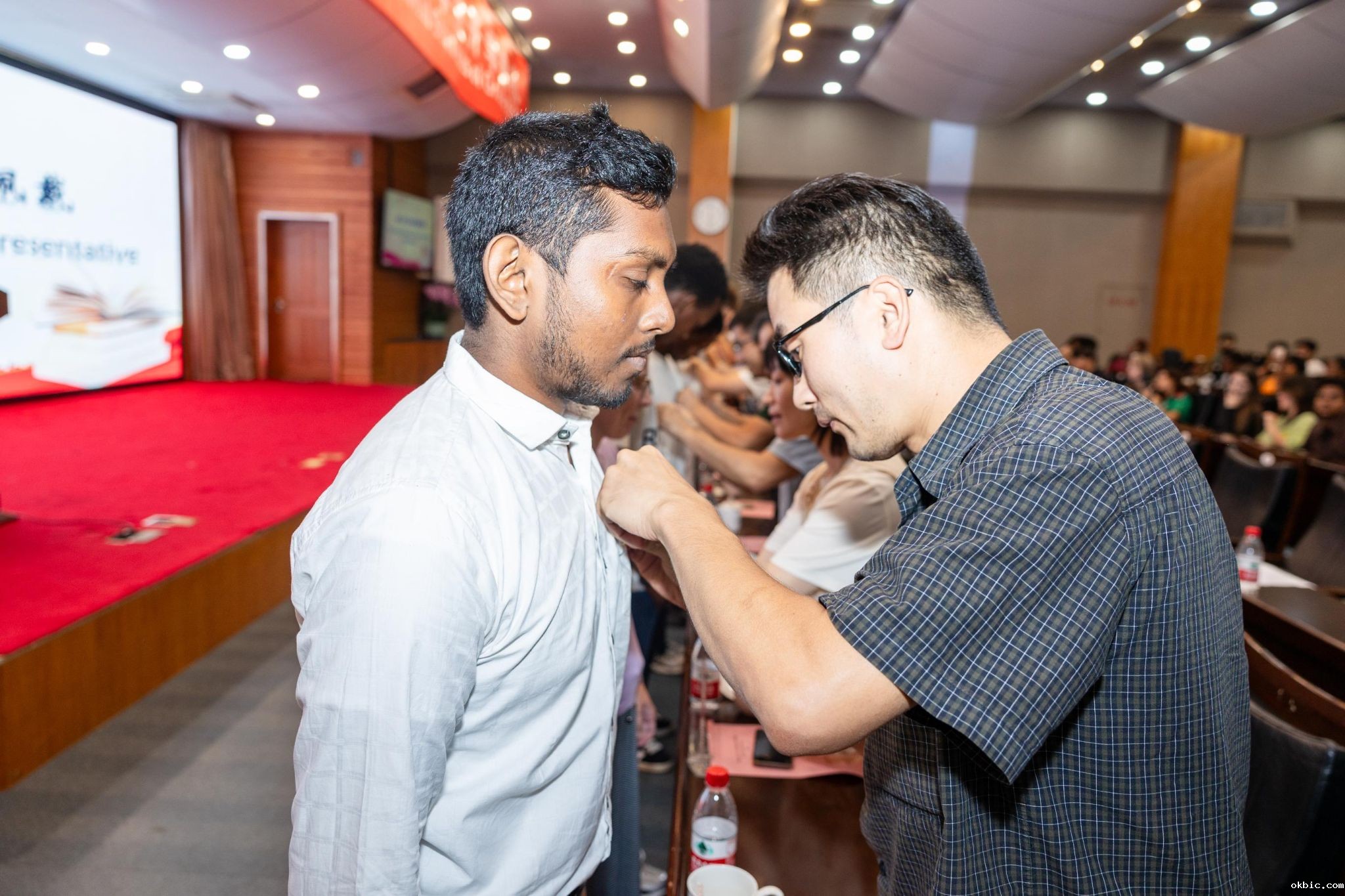 来自阿富汗的2024级国际商务专业研究生马明光作为老生代表发言。他说到,大学不仅是学习的地方,更是发现自己和表现自己的舞台。他通过亲身经历,勉励新生们积极参与学校组织的各类活动,提升自身能力、增强自信、结交朋友,为今后事业增光添彩。他还提到,成长之路充满挑战、困惑和始料不及的情况,但应保持好奇和无惧犯错,就会在成长道路上收获良多。他鼓励新生们要勇于做最好的自己,保持自信,拥抱未来。