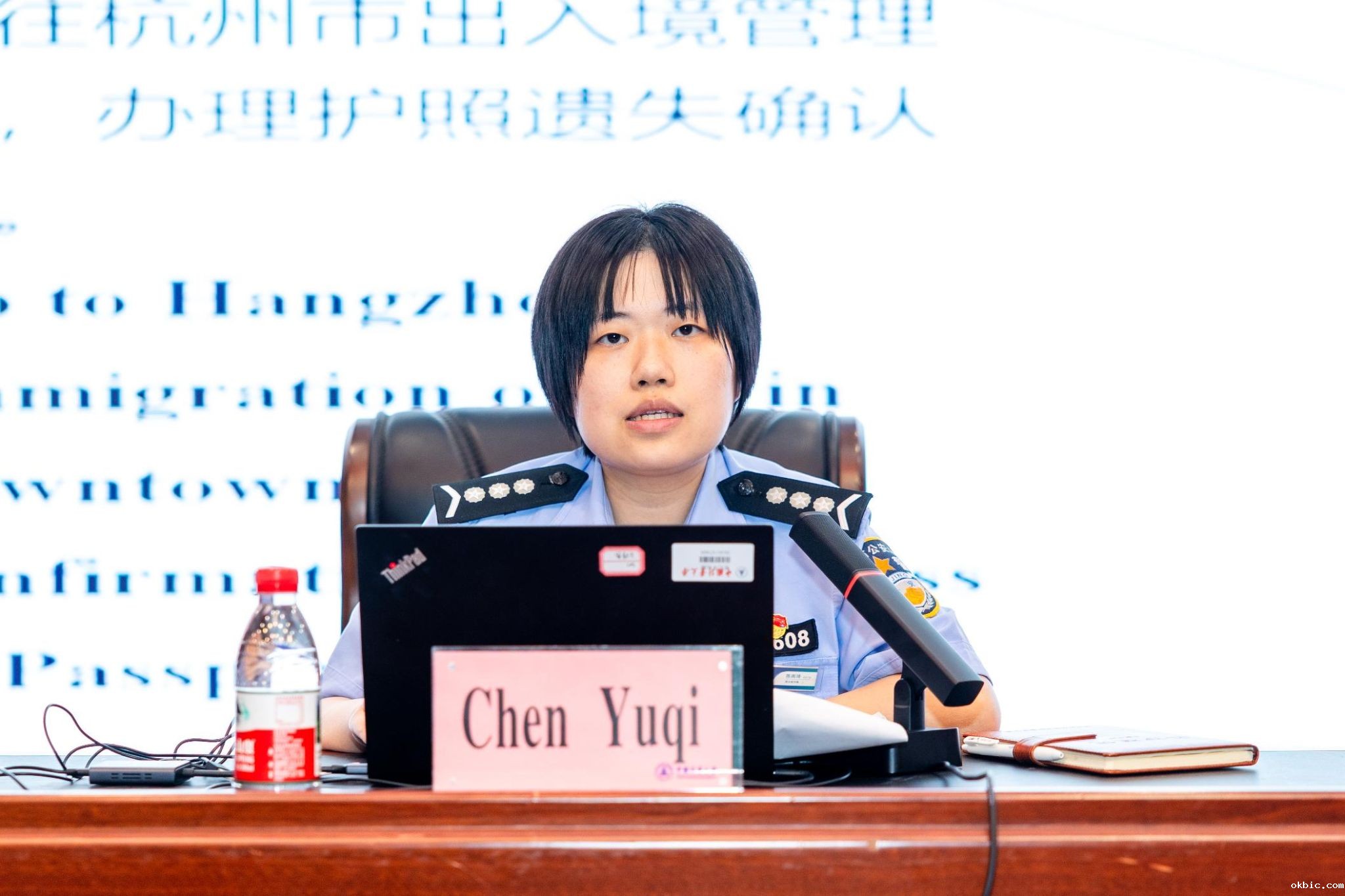 开学典礼结束后,来自钱塘区公安分局出入境管理大队的陈雨琦警官为全体国际学生新生做了关于中国法律法规普及的宣传讲座。她从外国人居留、签证和社会服务等几个方面,向大家介绍了外籍学生在杭生活相关的法律法规知识和各项社会便利服务,确保外籍学生能享受到安全、舒适、便利的在杭生活。