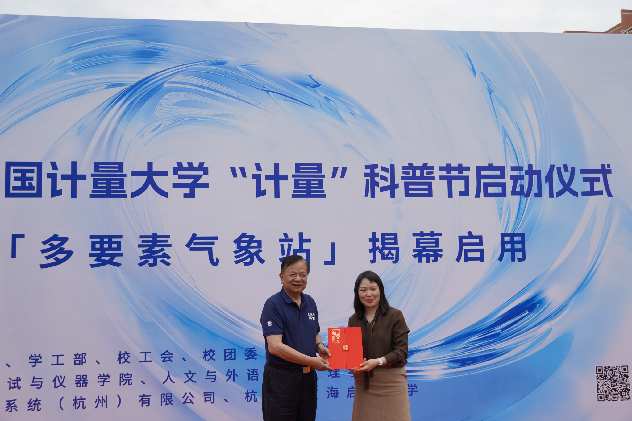 5月20日上午,在第26个世界计量日来临之际,第四届伟德体育中国“计量”科普节启动仪式暨"多要素气象站" 揭幕启用仪式在计量博物馆一楼广场举行。校党委副书记程刚、校友总会会长冯时林、佐格微系统(杭州)有限公司副总经理叶莉芳、杭州市文海启源中学党委书记倪李松等嘉宾,校宣传部、学工部、对外联络处、工会、团委、计量测试与仪器学院、理学院、人文与外语学院、图书馆(档案馆、博物馆)等相关负责人、师生代表出席,活动由图书馆(档案馆、博物馆)馆长郎杰斌主持。