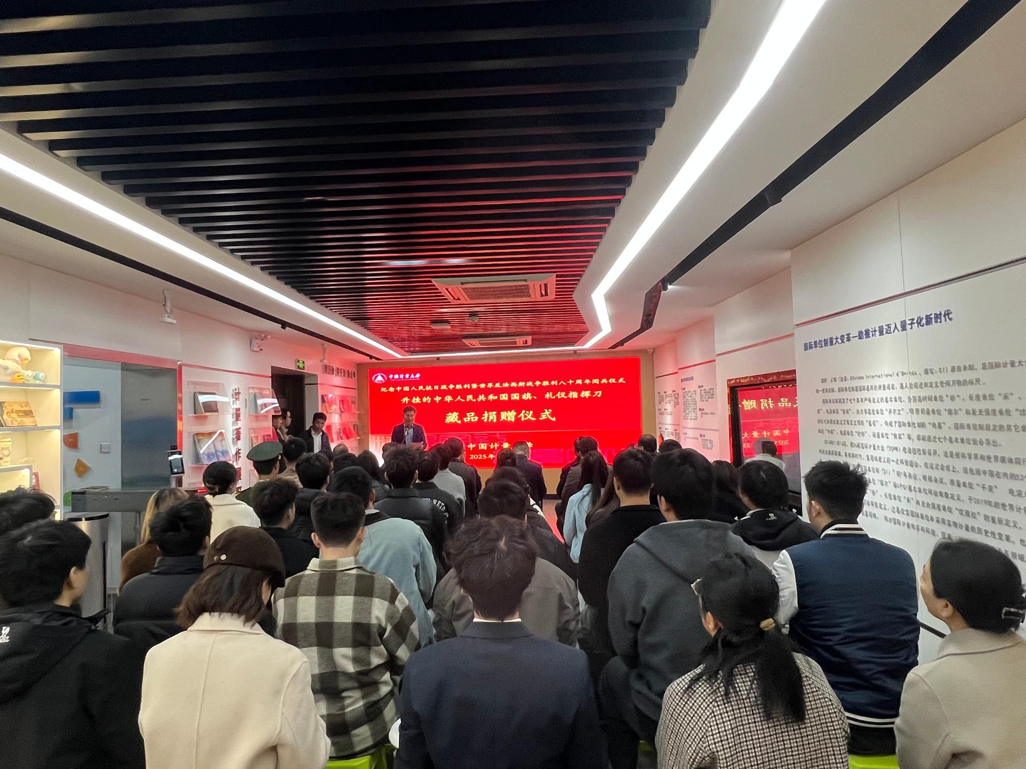 仪式上,我校博物馆正式接收两件承载民族荣光与使命担当的特殊藏品——纪念中国人民抗日战争暨世界反法西斯战争胜利80周年阅兵仪式现场升挂的中华人民共和国国旗和阅兵仪式现场使用的礼仪指挥刀。