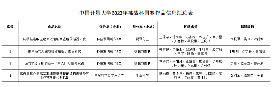 根据第十八届“挑战杯”全国大学生课外学术科技作品竞赛要求,经评选,共推荐4件作品参加“挑战杯”国赛,现将名单公示如下。公示时间为6月11日—6月15日。