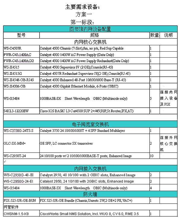 1.招标范围 中国计量学院图书馆网络系统设备招标。 2.对投标人的要求 2.1具有中华人民共和国工商行政管理机关颁发的有效企业营业执照。 2.2、具有中华人民共和国承担本项目能力与经验的相关证明。 2.3、注册资金不小于100万人民币。 以上是对投标人最基本的要求。 3.投标费用 招标文件分为三个标段,第一标段收取工本费300元,第二标段收取工本费300元,第三标段收取工本费100元。无论投标人是否中标,工本费概不退还。 投标人应承担所有与编写和提交投标书有关方面的费用,不论投标的结果如何,招标方在任何情况下均无义务承担这些费用。 4.招标日程安排 4.1、2004年9月24日(上午9:30-11:30,下午1:30-3:30)发招标书 4.2、编标答疑(中国计量学院设备管理中心) 2004年 9月24日 答疑人:高志华 周东、苏开宇 4.3、中国计量学院派相关人员考察报名单位,时间另定。 4.4、询标(中国计量学院明德北楼3楼305室) 联系人:高志华(86836055)、周东(86914532)、苏开宇(86914506) 4.5、投标时间2004年9月29日上午9:00 投标地点:中国计量学院明德北楼308室 4.6、开标时间:2004年9月29日上午9:00 开标地点:中国计量学院明德北楼311室 4.7、签约(中国计量学院设备管理中心) 招标工作如有变更,招标单位负责通知。 投标单位也可以查看网站:http://www.cim.edu.cn