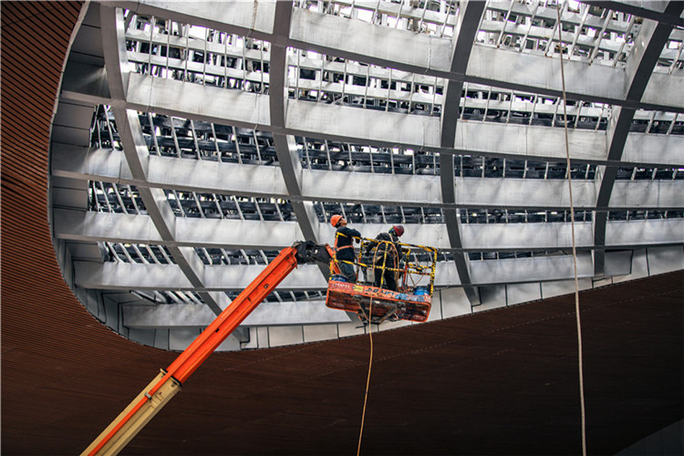 杭州亚运三馆总建筑面积58.15万平方米,作为亚运赛事期间的篮球、游泳、跳水和花样游泳的比赛场馆,是杭州“拥江发展时代”的新地标,它的竣工将带来巨大的时代机遇,推动杭州城市跨越式发展。主体育馆外形宛如“莲花碗”,游泳馆则具有银白色金属屋面和两翼张开的平台式设计,从高空俯瞰,其外形似是张开双翅的“蝴蝶”,设计灵感源自梁山伯与祝英台的中国传统爱情故事。这些无以伦比的建造设计无疑成为采风成员们镜头捕捉的对象,他们纷纷掏出自己的“长枪短炮”,无人机等,寻找最佳的角度、变换最好的焦段,力求设计出最美的构图。用相机记录下这具有中国特色、浙江风采、杭州韵味的美好,留存下最美劳动者的辛劳付出。