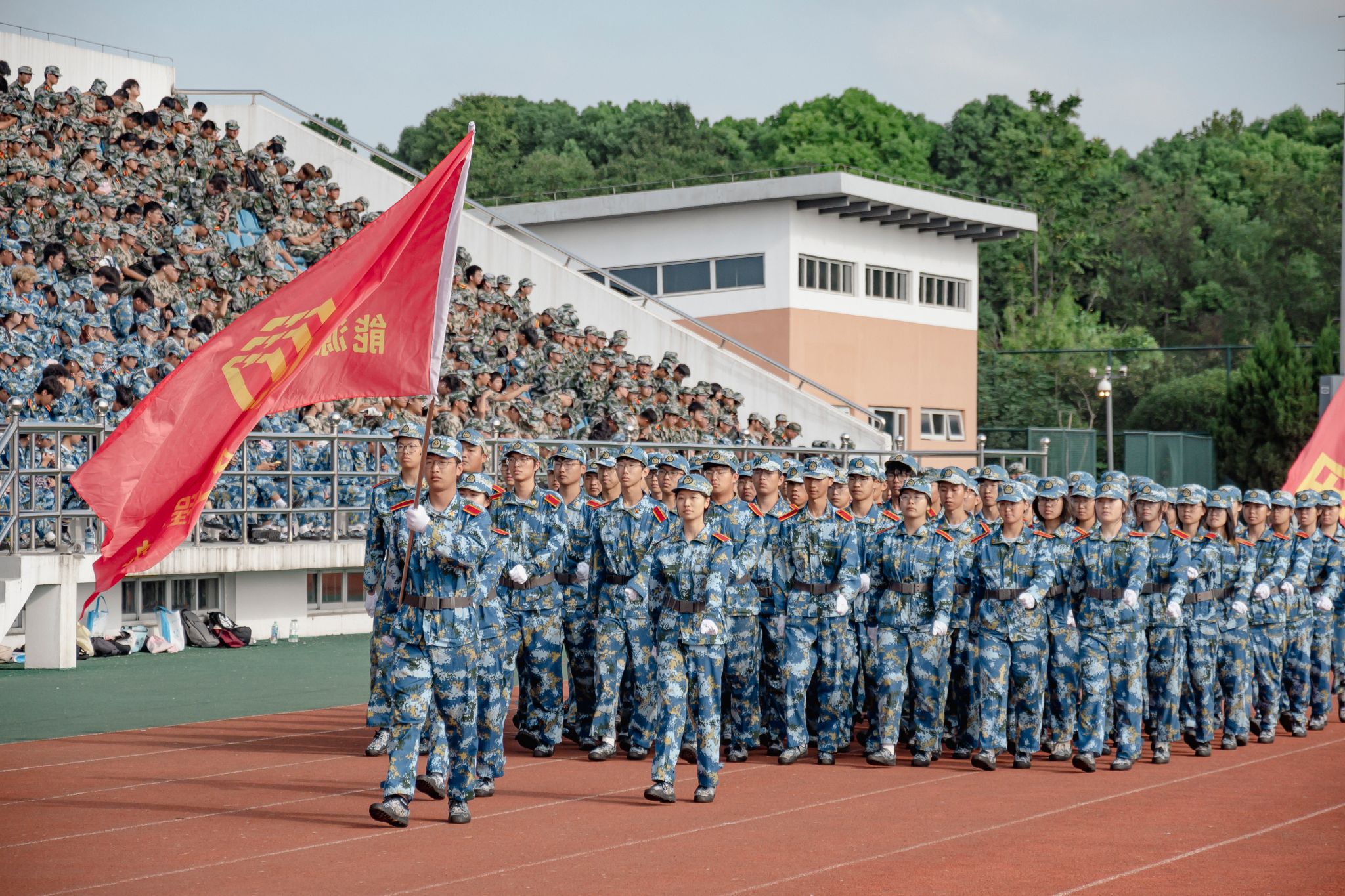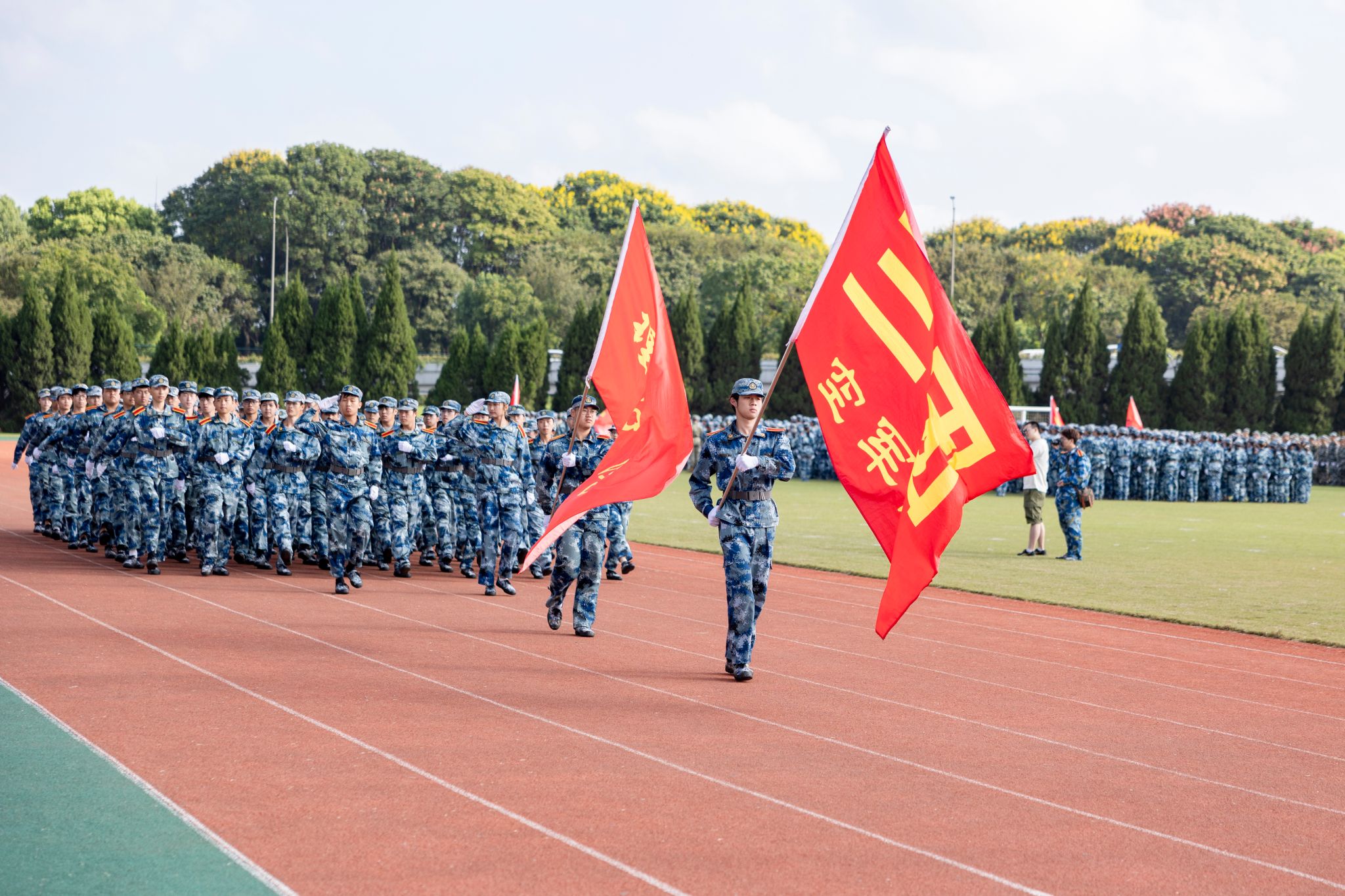 王新庆作军训总结讲话。他表示,在军训生活中,同学们发扬艰苦奋斗、顽强拼搏的精神,经受住了烈日和高温、台风和雨水的考验。在训练中强健体魄,在磨砺中突破自我,完成了各项军训科目,掌握了基本军事技能,增强了组织纪律性,巩固了国防观念和集体主义观念,培养了吃苦耐劳、坚持不懈的品质,形成了团结协作、顾全大局的优良作风。他希望同学们要积极向上,健康生活。保持健康的生活方式,让优秀成为一种习惯。要勤学笃行,求是创新。努力掌握科学文化知识和专业技能,以脚踏实地打牢学业根基,以创新思维练就过硬本领。要珍惜当下,天道酬勤。军训只是入学第一课,要通过辛勤学习去认清自我,提升自我,超越自我。