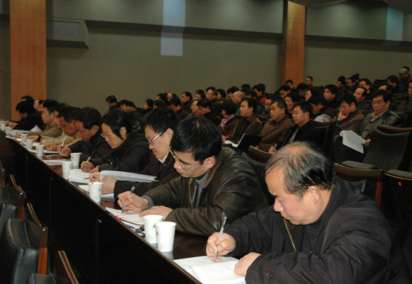 2008年是学校建校三十周年,是学校发展的新起点,更是学校顺利实现“十一五”发展规划目标,为建设教学研究型大学奠定坚实基础的关键一年。2月24日上午九点,学校全体中层干部们怀着对新一年学校发展的美好憧憬,精神抖擞地跨进了闻厅二楼会议室,参加在这里隆重举行的新学期全校中层干部大会。会议由校党委书记于永明主持。 于永明在会上作了重要讲话,就如何做好学校2008年的各项工作提出了六个方面的意见与要求。第一,要认清学校发展的阶段。于永明指出,三十年的学校应该已经进入到一个相对成熟的发展阶段,通过三十年的办学应该对办学规律和学校发展规律有更加自觉的把握,同时对社会也应该有更多的作为。学校的全体干部,尤其是在座的骨干同志必须从思想观念上、从工作思路上、从精力投入上切实地转变到这一变化的要求上,即从如何实现向教学研究型大学的转变、如何实现内涵发展、如何强化与彰显学校的特色、如何提高学校声誉等方面去更好地考虑我们的工作、做出我们的部署。第二,要把握工作的总体思路。必须坚持以科学发展观为指导,把以人为本,全面、协调、可持续发展的原则和要求真正地与学校的发展相结合,体现在我们的各项工作中;必须着力提高质量,提升成果,建设团队,强化特色,增加效益,扩大声誉,这是学校2008年党政工作总体思路的核心;必须从学校的目标、年度工作重点和本单位及部门的工作业务出发,统筹兼顾,突出重点,力争在重点工作上有突破性进展,做到年年有亮点,不断上台阶。第三,要完善学校治理结构。他认为,学校的治理结构是党委领导、校长负责、教授治学,民主管理。一要重视发挥校院两级学术委员会、教学委员会及学位委员会等学术性组织在学校办学中的作用,让教授、学术骨干有更多机会参加学科专业建设、实验室建设等学术事务的咨询和决策工作;二是学院的体制与结构是实行党政共同负责制,要进一步完善党政联席会议制度,不断加强书记和院长的沟通、协商,做到集体研究,统一决定;三要充分发挥校院两级教代会的作用,切实加强民主管理,加大院务公开,自觉接受群众监督;四要明确学科带头人、专业负责人的责、权、利,更好地发挥他们在教学科研、学科专业建设中的组织、协调和带领作用。第四,要提高科学管理水平。一要强调决策的民主性及指挥执行的统一性;二要强调制度的落实;三要重视办学成本的控制,加强资源共享,提高投入产出的效益;四要重视管理的人性化和公正性。第五,要加强校园文化建设。于永明说,要进一步实践“三立”理念,践行校训、校风;要倡导和实践“尊重、责任、合作”的校园精神;要实施《校园文化建设行动计划》,编写《量院精神与量院文化简明读本》并组织师生学习;要充分发挥“三大论坛”和“六大节”的作用,丰富校园文化生活;要有序推进校园文化环境建设。第六,要确保校园和谐稳定。一是要切实组织好十七大精神的学习,要强调不同类别、形式多样,重在提高针对性和实效性;二是要加强支部建设,尤其要加强学科性支部建设,充分发挥党组织在教学科研中的战斗堡垒作用和党员的先锋模范作用;三是要掌握思想动态,及时做好细致的思想工作;四是要深入师生,关心师生,密切干群关系,密切师生关系,及时解决师生困难,及时送去组织温暖;五是要巩固平安校园成果,切实维护校园安全稳定;六是要加强党风廉政建设。 于永明要求全体与会人员,要根据学校《2008年党政工作要点》及本次大会的精神与要求,进一步完善并确立本单位、本部门的工作目标和工作部署,精心研究,制定实施措施,将学校今年的党政工作任务落到实处并圆满完成。 会上,林建忠校长对2008年学校工作进行了全面部署,并提出了明确的目标与要求。他从实力与成绩两个方面对学校2007年的工作亮点进行了全面的评价和分析,回顾了学校2007年各项主要工作及取得的办学成果,并认真部署了学校2008年的主要工作。他指出,2008年是学校建校三十周年,是学校的而立之年,是学校发展的新起点,是实现“12345”目标的攻坚年。学校党政工作的总体思想是:认真学习贯彻党的十七大精神,高举中国特色社会主义伟大旗帜,深入贯彻落实科学发展观,进一步实践“三立”理念,着力提高质量,提升成果,建设团队,强化特色,增加效益,扩大声誉,促进学校科学和谐发展,为顺利实现“十一五”发展规划目标,建设教学研究型大学奠定坚实基础。 林建忠把学校2008年的主要工作归纳为十大“实力工程”及十大重要工作。十大“实力工程”是:教学成果奖、国家教学名师、国家精品课程、国家实验教学示范中心、重中之重学科与人文社科基地、省重点实验室和试验基地、硕士点、国家工程中心培育、省部及以上科技成果奖、省特级专家和151人才。十大重要工作为:校庆工作,处级干部选聘和调整、岗位设置与聘任、国家检测中心与省重点实验室的验收、东区教学区建设与使用、现代科技学院迎评准备、“标准”特色的强化、重中之重和重点学科的验收准备、实施本—硕创新计划和本科生“双专业”、“双学位”辅修制度及第二期邵氏项目争取等。 最后,林建忠校长关于幸福指数的一番精彩论述更是犹如新年的第一缕春风,亲切而温暖地吹进了每一位师生员工的心坎,让学校的每一位师生都对学