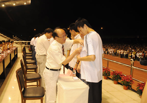 怀着畅求新知的志向和对美好未来的憧憬,又一批朝气蓬勃的年轻学子跨入了中国计量学院的大门。9月8日晚,我校2008级新生开学典礼在校田径场隆重举行。林建忠、徐涌金、陶伟华、侯宇、蒋家新、冯时林等学校领导,党委委员、组织部部长陈希武参加了大会。大会由党委副书记陶伟华主持。 林建忠校长在开学典礼上致辞。他代表学校向全体新生表示衷心的祝贺和热烈的欢迎,对广大学生和家长对中国计量学院的信任表示衷心的感谢。林建忠在讲话中对计量的历史、计量的作用以及计量的内涵作了深刻而精彩的阐述。他通过奥运会上飞人博尔特将200米世界纪录提高了0.02秒等生动事例指出,计量的作用已经涉及到国民经济、科技、人民生活的方方面面。他指出,中国计量学院作为中国计量、标准、质量、检验检疫高等教育的国家队,有鲜明的大学特色,同时得到了社会的广泛认可。学校的师生期待与大家一起创建美好的未来。 林建忠校长对新生们今后在学校的学习和发展提出了几点希望。第一,精思国计,细量民生。大学生应该思考人与自然、人与社会、个人与国家、科学技术与人文精神的关系,在思考的基础上建立正确的、明智的价值取向,要立爱国心、持公益志、经世济民、择善而从,不断强化自己的责任心和使命感。第二,适应变化,把握开端。要及时调整好自己的心态,尽快适应环境的变化,摸索新的学习方法,尽快完成角色转换。第三,励志笃行,求真诚行。大学为大家提供了一个积累知识、探索真理、增强才干的平台,在大好时光中要更加珍惜,学会吸收、学会思考、学会应用、学会创新,只有在大学里积累更多的势能,才能在今后的工作中具有更大的动能。第四,全面发展,多元吸收。要在积累知识、增加才干的同时陶冶性情、锻炼体魄,增进师生情谊,不断锤炼和提高自己,确立一个向上的人生态度,为将来走上工作岗位奠定良好的品格基础。林建忠校长寄语新生,殷切希望西湖的灵秀与美丽能够孕育出大家的从容与淡定,使大学生活过得更加均衡和愉快;而钱塘江水的空阔与潮涌能够激荡出大家的激情与壮志,使将来的学业与事业蒸蒸日上。 开学典礼上,学校领导亲自为新生代表们佩戴了中国计量学院校徽,与全体2008级新生共同见证这难忘的一刻。 学校各二级学院的院长或党总支书记在典礼上先后致词,他们或语重心长或慷慨激昂的发言满怀着祝福与希望,赢得了同学的阵阵掌声。 老生代表浙江省学联主席、校学生会主席、质量与安全工程学院赵鑫,新生代表经济与管理学院阮洲波分别发言。理学院杨艺科带领全体新生在开学典礼上作了庄严的入学宣誓。 开学典礼在在绚烂的烟花和隆隆的礼炮声中结束。这是2008级新生们共同完成的成人礼,它标志着新的学习和生活已经开始。