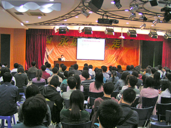 11月10日晚6:30,学校就业办在学生活动中心多功能厅举办了2006年浙江省公务员考试知识指导讲座。本次讲座邀请了杭州市最早开展公务员考试培训的机构之一――杭州21世纪人才评价培训中心主任周文芳女士担任主讲,指导内容涉及公务员考试形势分析、公务员报考注意事项、考试大纲解读、笔试备考、公务员考试面试内、原则及技巧等六大板块。讲座内容详实、案例丰富,生动精彩,长达两个小时的讲座时间内,现场的同学聚精会神听讲,许多同学还认真的做了笔记,一些同学一直是站着听完了讲座。整个讲座取得了相当好的效果,结束之后同学们都纷纷表示受益匪浅。本次讲座的课件将由就业办提供给广大毕业生下载。