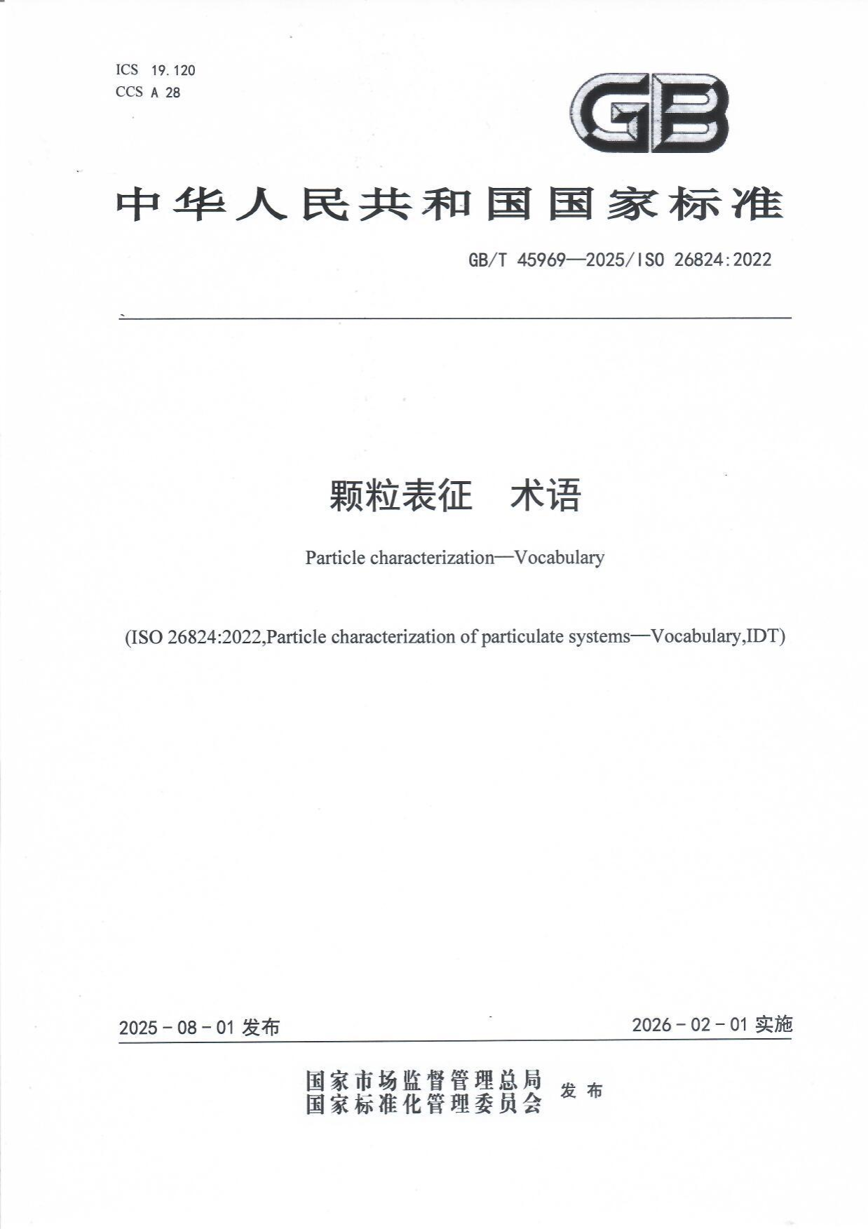 GB/T 45969—2025《颗粒表征 术语》规范了颗粒表征术语的表述和内容界定,涵盖了17个大类、340余个术语和定义。该标准适用于颗粒粒度分析的结果表述,颗粒形状与形态的定性和定量描述,样品制备,比表面积和孔隙率表征以及范围从纳米到毫米的颗粒粒度分布的各种测量方法(包括沉降法、分级、超声法、激光衍射法、动态光散射法、单颗粒光学法、差分电迁移率分析法、图像分析法和其他方法)。