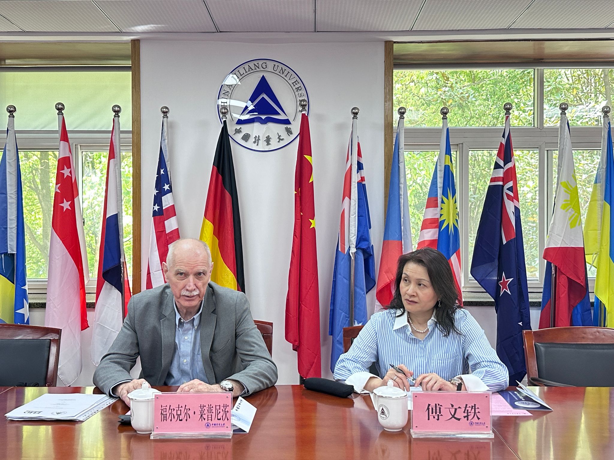 4月15日上午,德国德累斯顿应用技术大学(FHD)校董Volker Leipnitz和国际部部长Weny Fu来我校交流访问,商谈在我校设立德语教学中心等事宜。副校长王斌锐出席接待活动,国际处、国际学院、信息学院、经管学院、人外学院、艺传学院相关负责人及国际处相关人员参加座谈会。