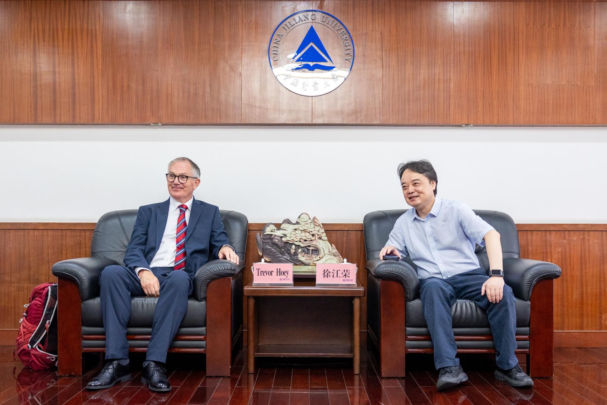 Trevor Hoey副校长感谢我校的热情接待,对双方已有合作基础和交流成果表示肯定。他表示,期待与我校携手推动新一轮合作发展,积极探索更多领域和形式的交流合作,并欢迎我校学生积极申报BUL与国家留学基金委联合设立的博士奖学金项目。他同时对即将赴英参加BUL夏令营的计量学子表达了关心与祝愿。