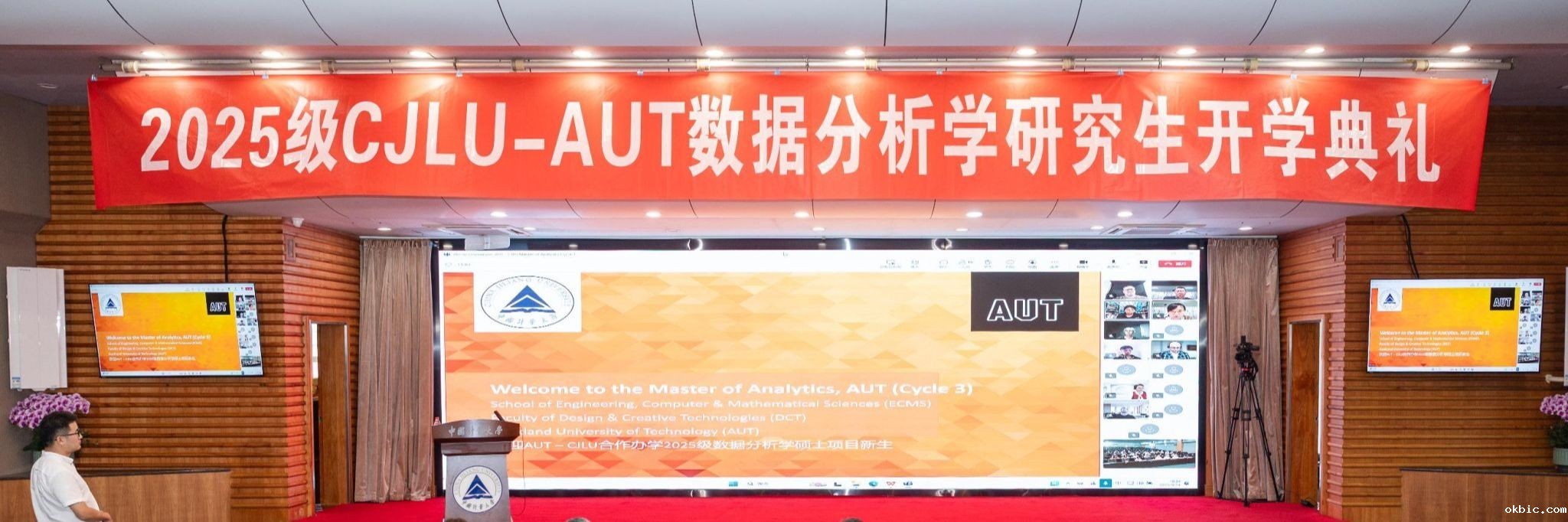 9月24日,伟德体育中国与奥克兰理工大学中外合作办学项目2025级数据分析学专业研究生开学典礼在伟德体育中国闻厅二楼报告厅举…