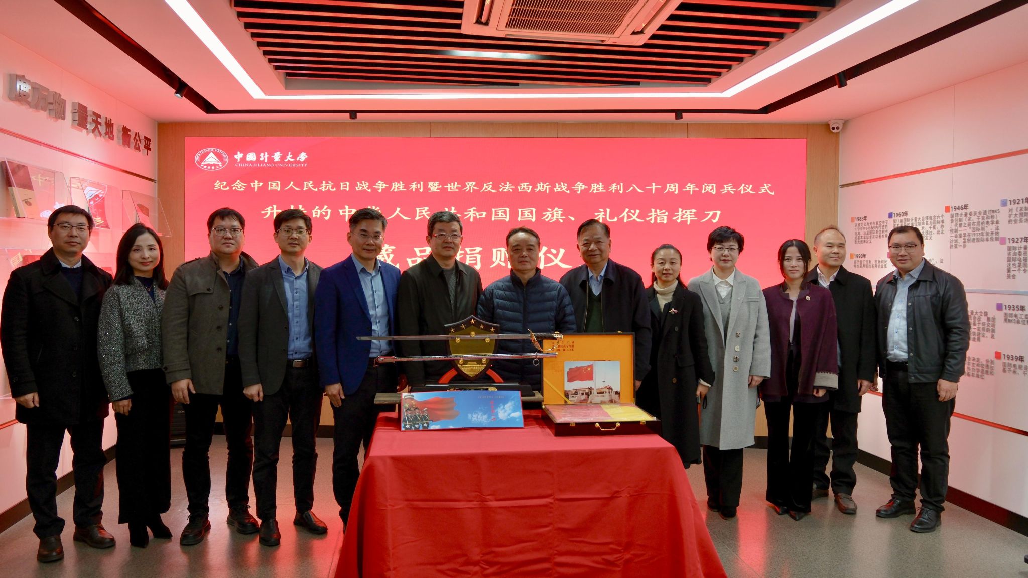 近日,我校举行抗战胜利 80 周年阅兵式珍贵藏品捐赠仪式。校党委书记徐江荣,党委副书记王迪钊,校发展委员会副主任、校友总会会长冯时林出席活动,学校相关职能部门负责人、国旗护卫队学生代表、退役士官代表等参加活动。副校长王斌锐主持仪式。仪式上,我校博物馆正式接收两件承载民族荣光与使命担当的特殊藏品——纪念中国人民抗日战争暨世界反法西斯战争胜利80周年阅兵仪式现场升挂的中华人民共和国国旗和阅兵仪式现场使用...