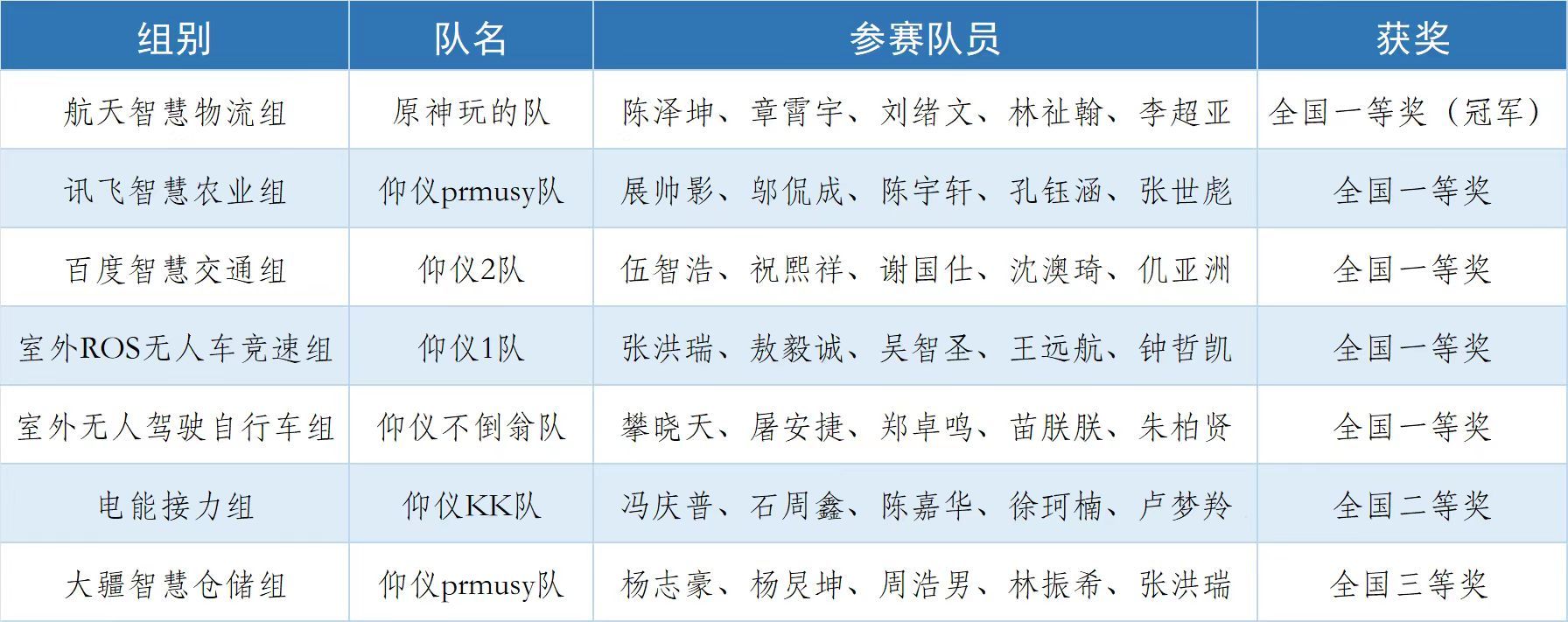仰仪智能车协会在教务处、机电学院领导的关心和支持下,在指导老师陈锡爱、曾涛和富雅琼的带领下,在全体协会成员的共同努力下,不怕酷暑刻苦钻研,排除困难努力训练,分赴湖州学院、重庆邮电大学、北京物资学院、安徽医科大学、中科大苏州研究院、重庆第二师范学院和天津工业大学参加全国大学生智能汽车竞赛的选拔赛和全国总决赛,最终取得了优异的参赛成绩。其中航天智慧物流组继去年获全国总冠军后,今年成功卫冕冠军,受到了中国网、中国日报网、中工网等众多媒体的多方报道。