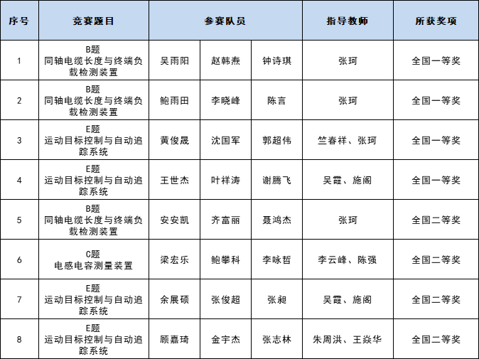 近日,2023 年全国大学生电子设计竞赛获奖结果发布,我校学子表现出色,取得了参加该项赛事以来的最好成绩。共获得全国一等奖4项、二等奖4项,省一等奖3奖、二等奖12项、三等奖11项,其中国家级奖项数量在全国本科组高校中第26名,浙江省第3名。