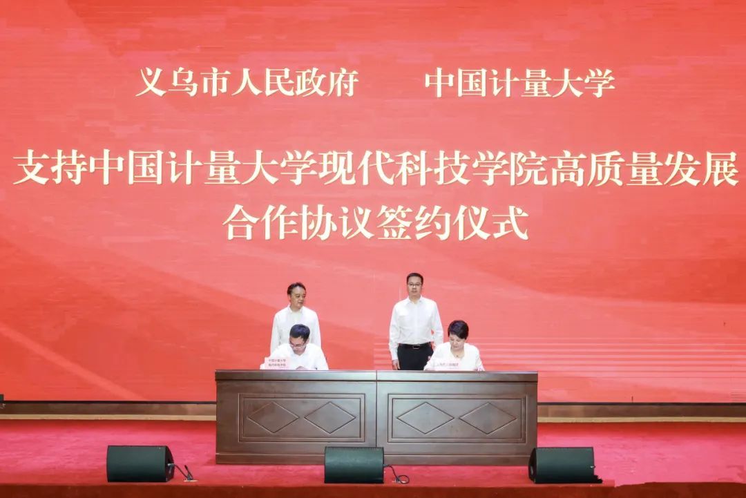 在温建飞、徐江荣的共同见证下,龚淑娟、谢代梁分别代表义乌市政府和伟德体育中国现代科技学院,签署支持伟德体育中国现代科技学院高质量发展合作协议。