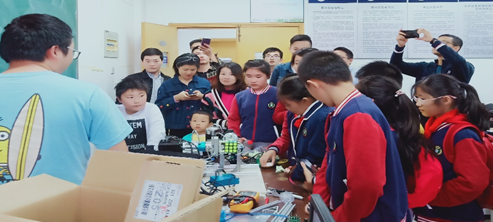 本次科普宣传主要是针对学正小学五年级的小学生来开展的。在智能车实验室、智能互联实验室和移动互联网实验室的大力支持下,展示了电磁感应的四轮和直立智能车,机器人玩魔方,3D打印机,智能垃圾桶,手势识别,教孩子学做网页等等有趣的活动,孩子和家长们都玩得不亦乐乎,直呼打开眼界。特别好奇的是智能车为什么不需要遥控器而能跑得这么快?为什么打印机能打印玩具出来?垃圾桶为什么能听懂人说话?手势识别有什么用等等?小朋友为自己学会了制作网页而感到非常的高兴。