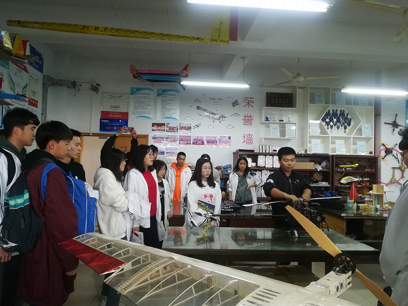 在星火工程训练中心,一架架自主设计制作的航模吸引了同学们的眼球,经过学校航模队队员的讲解,同学们对航模的类型、特点等有了初步了解,并且亲身体验了模拟飞行程序。