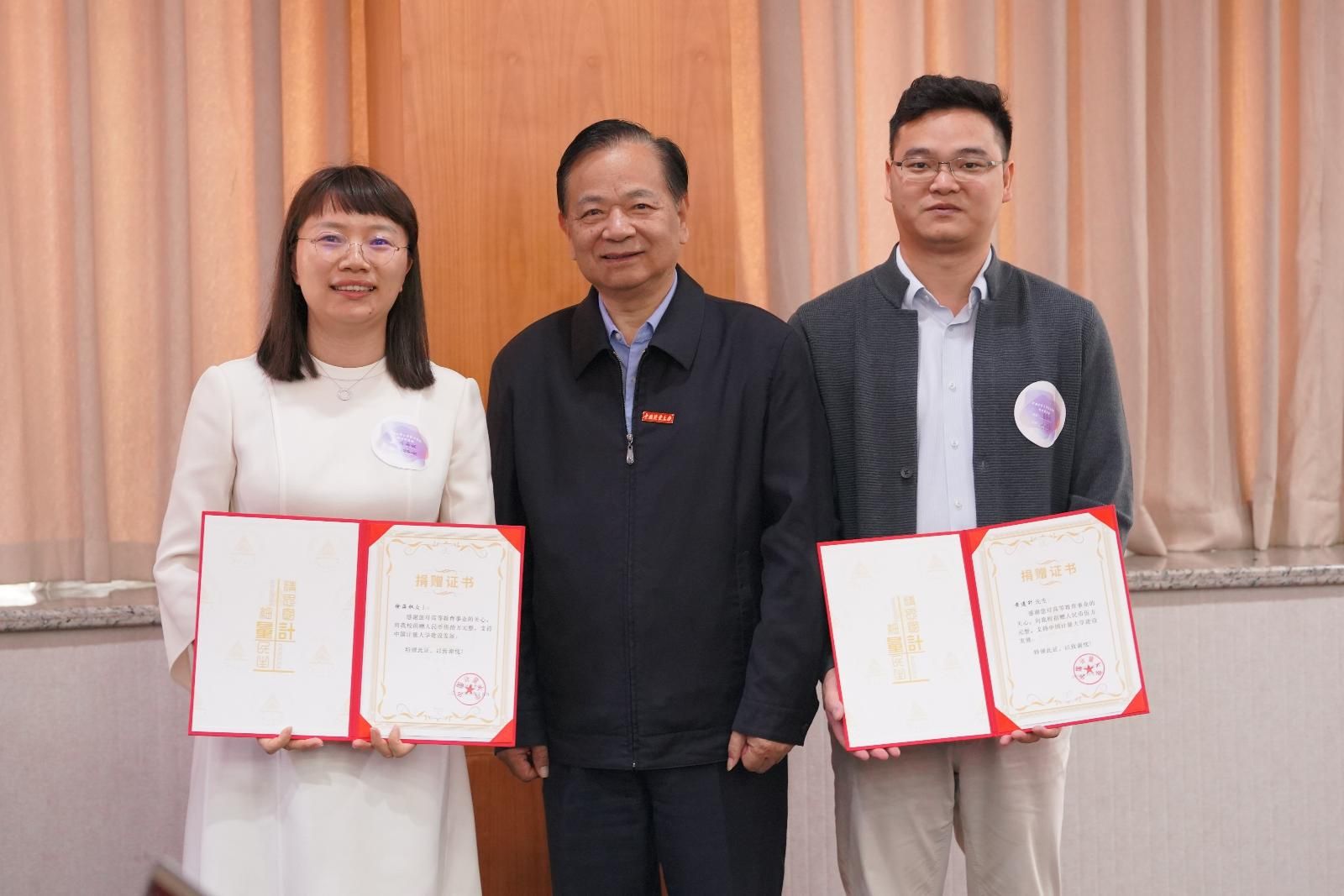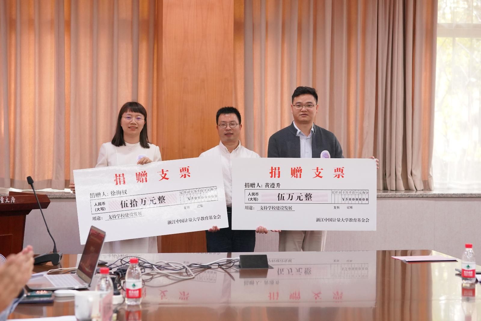 成立大会上举行了校友捐赠仪式。会长徐海钗和副会长黄遵升(2005级财务管理专业校友、浙江梓圣医药科技有限公司总经理)分别向母校捐赠人民币50万元和5万元,用以支持母校发展。冯时林对两位校友热心母校事业的善举表示感谢并颁发捐赠证书,陈骅代表学校接受捐赠。
