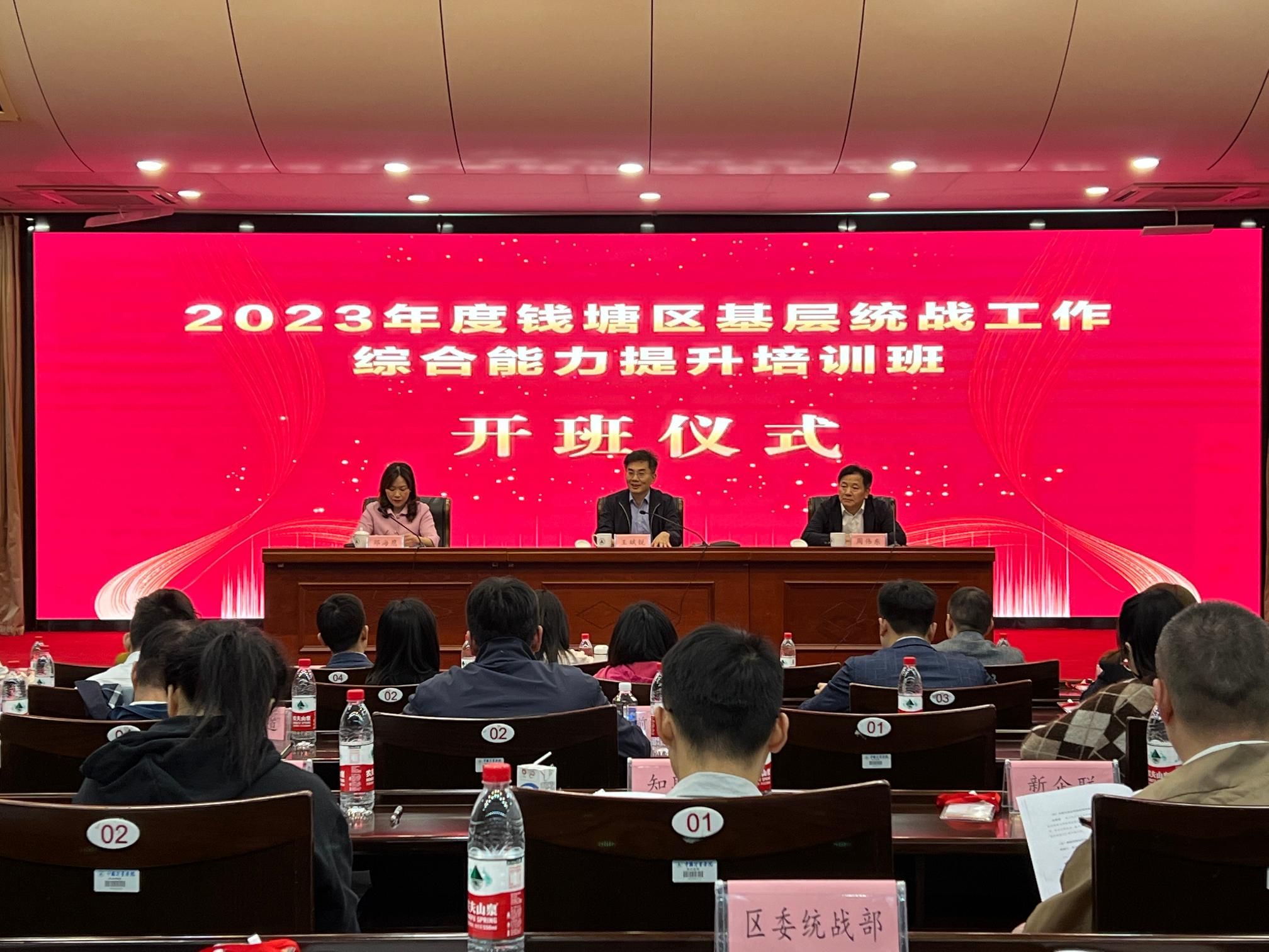 为深入学习贯彻习近平新时代中国特色社会主义思想,提高钱塘区统战基层干部的统战工作综合能力,11月8日上午,2023年度钱塘区基层统战干部综合能力提升培训班在我校闻厅报告厅开班。伟德体育中国党委委员、副校长王斌锐,钱塘区委常委、统战部部长周伟东出席本次开班仪式。仪式由钱塘区委统战部副部长、钱塘区工商联党组书记邓海鹰主持,来自钱塘区基层统战干部80余人参加培训。