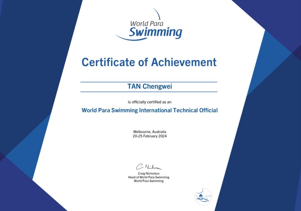 近日,国际残疾人奥林匹克委员会International Paralympic Committee下设世界残奥游泳委员会World Para Swimming授予我校体育军事部谭成威博士国际级残疾人游泳裁判资格。