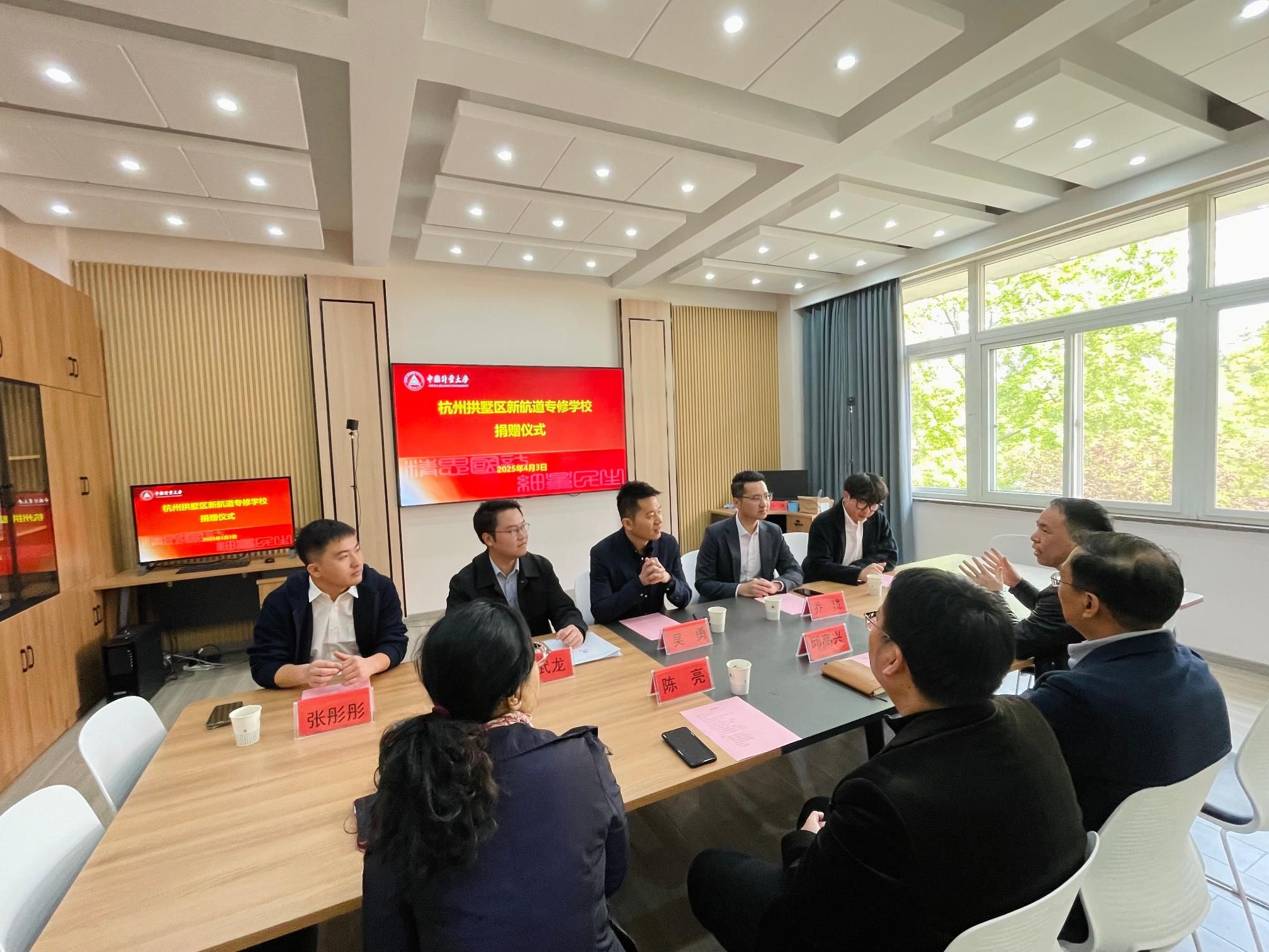 陈亮首先代表学校向来宾介绍基本情况,对吴勇一行的到来表示欢迎;邱高兴代表学院,对杭州拱墅区新航道专修学校的慷慨捐赠表示感谢,他介绍了学院教育教学理念、专业设置情况和学生培养方案与目标,学生取得成绩,表示这些与校内外各界人士的支持是密不可分的。吴勇详细介绍了新航道发展历程,对伟德体育中国、人文与外语学院的学生素质予以充分肯定。三方还对后期可能开展的合作进行了充分讨论。